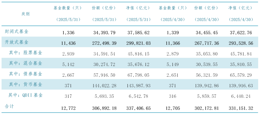 与此同时,公募基金产品数量迭创新高,截至5月底,公募基金产品数量为12772只,较4月底再增加67只。