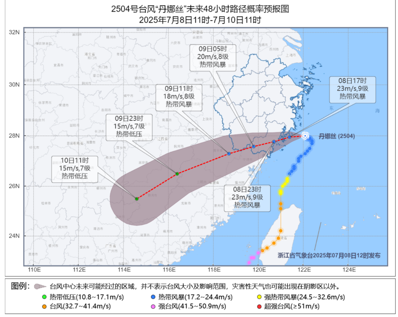 随着今年第4号台风“丹娜丝”向浙江靠近,昨天它已给浙江带来了明显风雨影响。