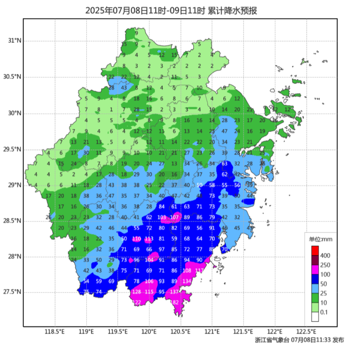 浙江省气象台预计,今天浙南和沿海地区阴有中到大雨,其中温州、台州、丽水东部、宁波南部等地部分有暴雨到大暴雨;明天浙南和沿海地区多云到阴部分有中到大雨,其中温州和丽水南部部分暴雨,局地大暴雨。气象部门重点提示:台州和温州东部地区已出现较强降雨,今天温台丽等地部分仍有暴雨大暴雨涨声操盘,温岭、玉环、苍南等15个县(市、区)暴雨灾害风险较高,需注意防范强降水可能引发的城乡积涝、小流域山洪、山体滑坡等次生灾害;同时需防范沿海8~11级大风的不利影响。