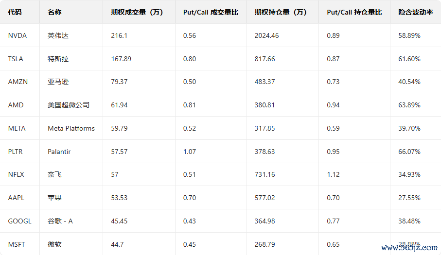 美股期权成交量排行榜前十