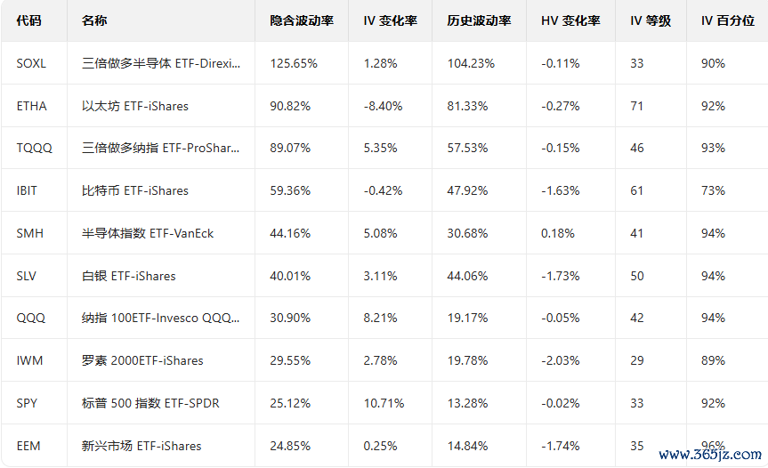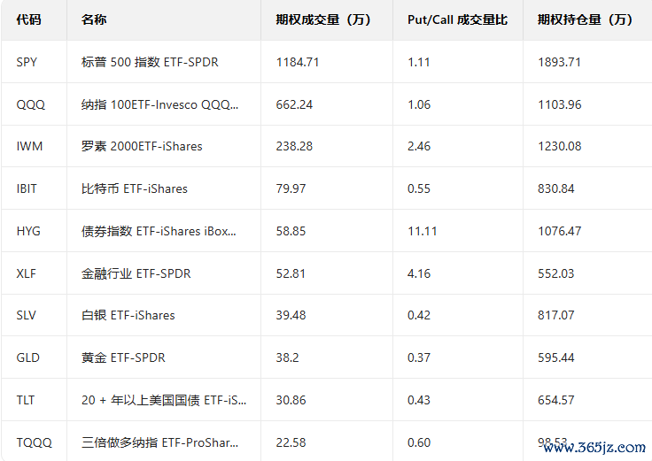 三、美股ETF期权成交榜美股ETF期权成交量排行榜前十