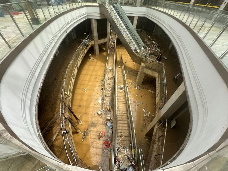 二楼俯瞰常驰财富广场负一楼被水淹区域钻石配资。