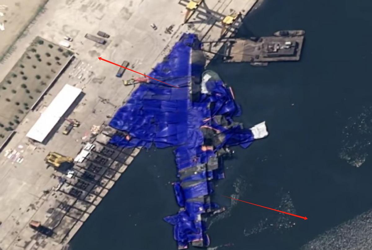 更离谱的是,这艘驱逐舰的扶正过程,也并非像之前众多军事自媒体分析的一样,需要先完全入水后,再在水面上浮起来,而是以最让人没想到的方式直接从原地站了起来。