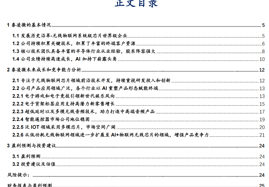 本报告摘自华安证券2025年6月23日已发布的《【华安证券·半导体】泰凌微(688591):全球无线连接一流企业,端侧AI持续发力》,具体分析内容请详见报告。若因对报告的摘编等产生歧义,应以报告发布当日的完整内容为准。