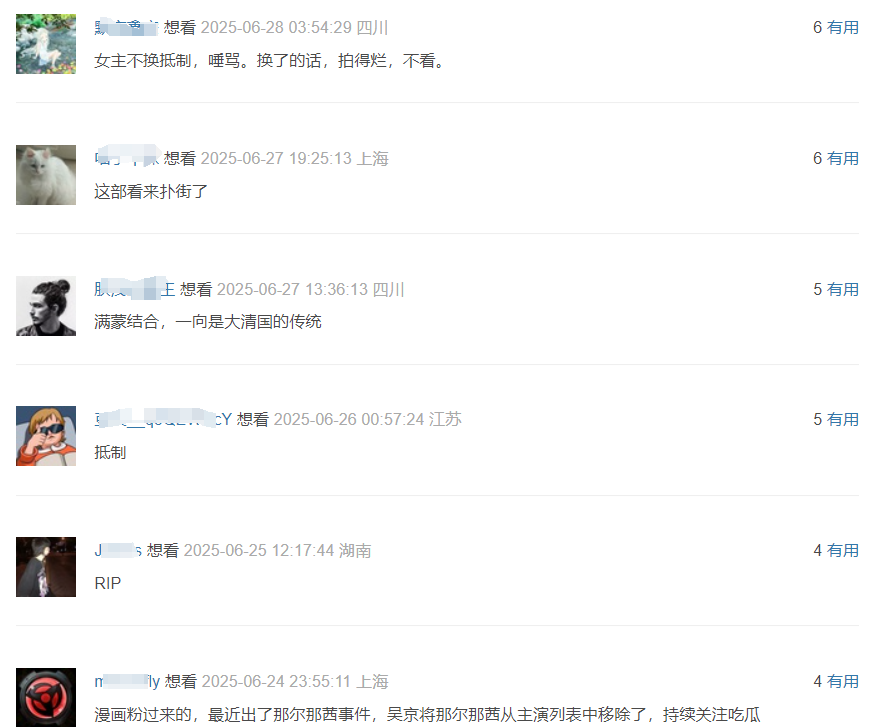如此,观众们都开始抵制那某那茜曾出演过的影视剧,其中就包括吴京的《镖人》。