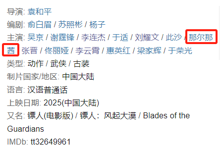 另外,在其他电影平台上,那某那茜的名字依然存在于《镖人》的演员表中。