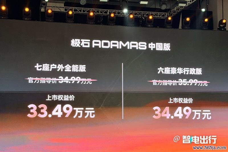 极石ADAMAS七座版指导价34.99万、六座版指导价35.99万,起售比极石01贵了5万。ADAMAS是极石01的改款车型,不仅在中央扶手加上了冰箱配查网,空气悬架也给配上了,算上装载的行程,可以调节140mm。